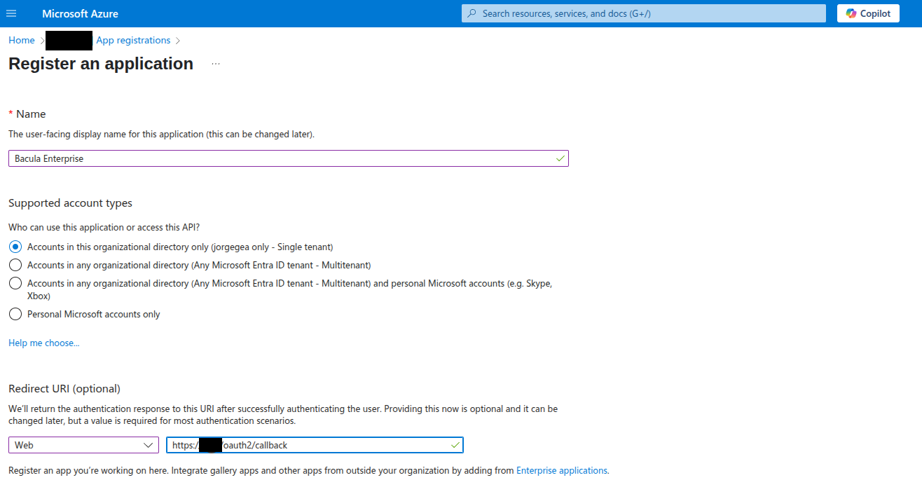 # Public-facing address or hostname where we will serve the final service (which is oauth2-proxy->Bweb) address=your.hostname.or.ip # Provider kind # If Okta: oidc # If Microsoft Entra ID: entra-id # There are more options, but not tested oauth2_provider=oidc # Address from the provider that will manage the OIDC/OAuth2.0 process # Okta example oidc_issuer_url=https://my-env.okta.com/oauth2/default # Logout URL that will be called automatically by OAuth2-Proxy just after logging-out from the BWeb button oauth2_logout_url=https://my-env.okta.com/login/signout # Client ID of the App registered in the Identity Provider client_id=0loijnmuy3478dnfPj609 # Associated secret client_secret=a3c3_tloijnm87yhdb2349dbP6tcJaer090cjfpes_A9g1-dDu7qrCIAD0398 # Default group name or id that will represent a BWeb admin. For the first access, an admin user must login # If you use Entra ID and just want to use the admin role, here you could put the admin group UUID default_admin_role="Bacula Admins" # Configure the firewall automatically, so enabling HTTPS/443 configure_firewall=y # Restart BWeb and OIDC/OAuth2.0 after the configuration restart_services=y
