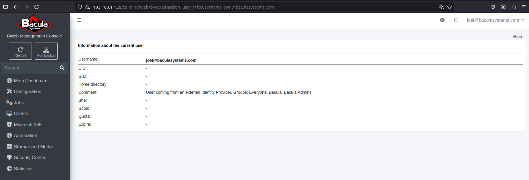 "aaaaaaaa-1111-2222-bbbb-333333333333" : "Bacula Admins",